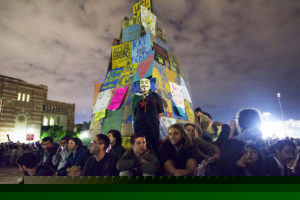 Photo: Students protested against the tuition hike at Wilson Plaza, preventing the organizers of the Beat ‘SC rally from lighting the bonfire, a school tradition that is held before the UCLA vs. UCLA football game. (Owen Emerson/Daily Bruin)