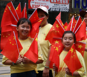 Photo: Two girls hold several Chinese flags, exhibiting their national pride at a pro-China rally. (Creative Commons photo by Rebecca MacKinnon via Flickr)