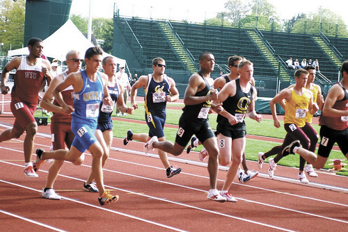 Photo: A Bruin fan and 2007 alumnus took photos of the decathlon competition last weekend at Eugene, Ore. Trent Perez runs with the pack. Perez was the first to post scores for the Bruins at the Pac-10 Championships.