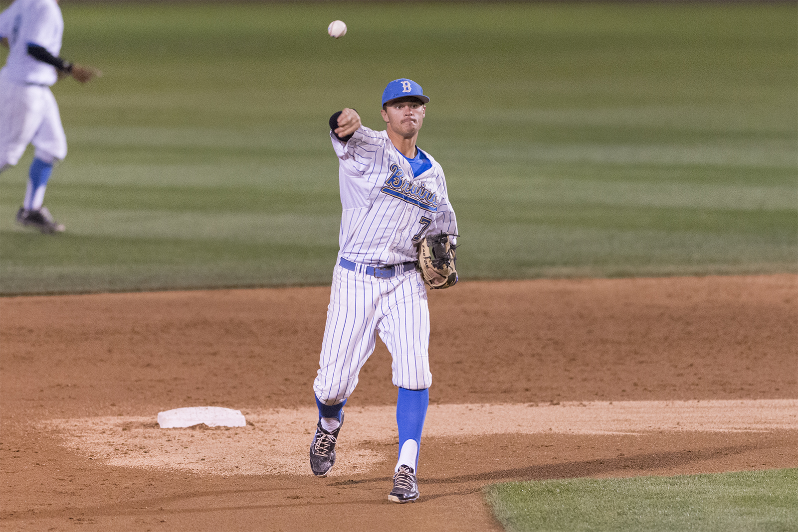 Photo: Shortstop Kevin Kramer has bounced back strong this year after tearing his labrum and missing all of last season. The redshirt junior leads UCLA in nearly all of the major offensive categories, including on-base percentage, slugging percentage and batting average. (Max Himmelrich/Daily Bruin)