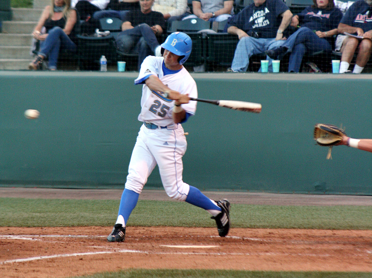 Senior outfielder Chris Giovinazzo hustles for an infield single on Friday. In the Bruins’ Tuesday night 14-6 win over San Diego State, Giovinazzo went 2-for-5 with a run and an RBI. The win was UCLA’s second straight coming on a Tuesday. The Bruins improved to 20-12 on the year ahead of their upcoming weekend trip to Palo Alto to face Stanford in a three-game Pac-10 series.