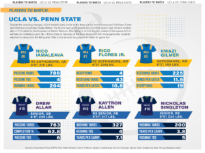 Photo: Redshirt sophomore wide receiver Rico Flores Jr. (left) and Penn State quarterback Drew Allar (right) are pictured. Photo credit: (Photos by Aidan Sun/Assistant Photo editor. Design by Crystal Tompkins/Design director)