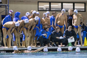 Photo: Coach Adam Wright gives instructions to the UCLA men’s water polo team during a game in 2022. (Joseph Jimenez/Photo editor)