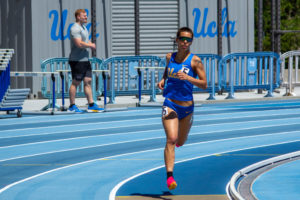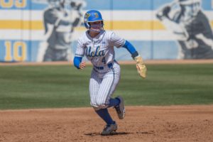 Photo: Redshirt junior utility Rylee Pinedo runs on the base path. Pinedo has made two starts in right field throughout her four-year stint in Westwood. Pinedo serves primarily as a pinch runner, and she has stolen two bases this season. (Karla Cardenas-Felipe/Daily Bruin staff)