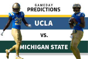 Photo: Junior defensive back Scooter Jackson (left) and redshirt sophomore quarterback Nico Iamaleava (right) are pictured. (Photos by Aidan Sun/Assistant Photo editor. Design by Crystal Tompkins/Design director.)