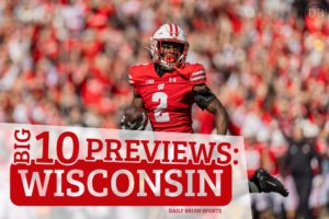 Photo: Cornerback Ricardo Hallman carries the ball. (Photo courtesy of Wisconsin Athletics. Design by Crystal Tompkins/Design director)