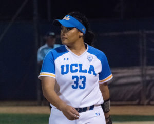 Photo: Redshirt junior Rachel Garcia set a career high with five RBIs and hit her first career triple for UCLA softball in its 7-1 win over Florida on Wednesday night. Garcia also tied a personal best with four hits. (Ashley Kenney/Daily Bruin)
