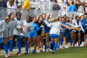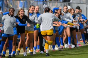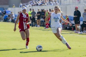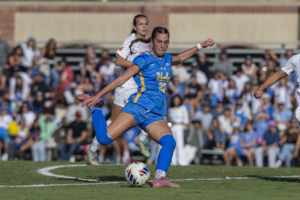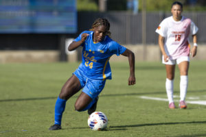 Photo: Freshman forward Payten Cooper dribbles the ball. The Plano, Texas, local has started the last five games for the Bruins. (Leydi Cris Cobo Cordon/Daily Bruin senior staff)