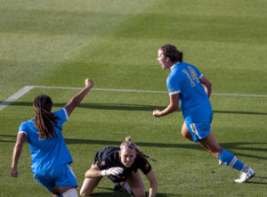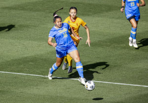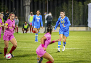 Photo: No. 3 seed UCLA women’s soccer is in action against No. 14 seed Clemson on Wednesday in the third round of the NCAA tournament. Sophomore forward Mia Fishel scored two of the Bruins’ five goals when the two teams met in 2019. (David Rimer/Daily Bruin staff)