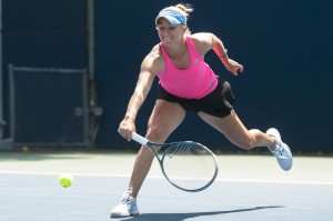 Photo: Thursday afternoon’s USC match will be the first taste of the Bruin-Trojan rivalry for Alaina Miller and the rest of the freshmen on UCLA women’s tennis. (Kathy Chen/Daily Bruin)